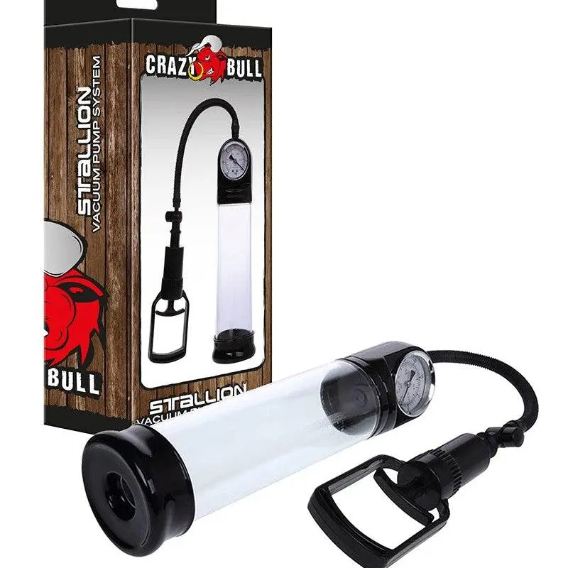 Crazy Bull Stallion penis pomp. Hét hulpmiddel voor een betere erectie. Deze penis vergroter werkt door lucht uit de buis te zuigen en een vacuüm te creëren. De penis is een zwellichaam en het effect zal zijn dat uw penis groter, dikker, en langer zal worden. Uw beste personal trainer.