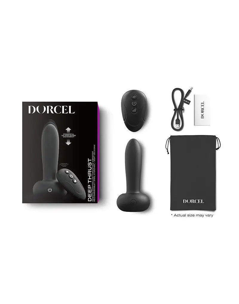 Deep Thrust is uitgerust met een magnetische thrusting technologie die een stillere op- en neergaande beweging mogelijk maakt in vergelijking met klassieke modellen, en biedt authentieke sensaties met discretie. Of je nu de voorkeur geeft aan vaginale of anale stimulatie, de ronde, bolvormige punt van Deep Thrust zorgt voor een gemakkelijke en progressieve inbrenging. Deep Thrust heeft 10 vibratiestanden en 3 intensiteitsstanden.