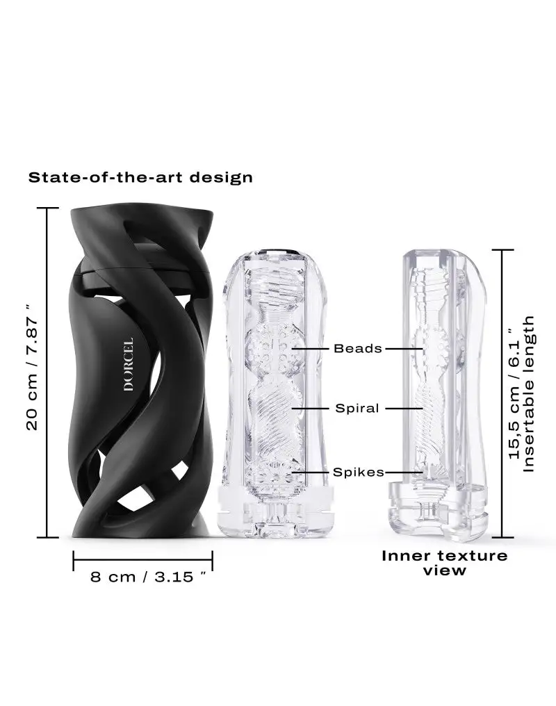 Deze avant-garde design handmatige masturbator, ziet eruit als een waar kunstwerk. Zijn gladde en ergonomische behuizing ligt perfect in de hand. Zijn verschillende ultra-elastische en zachte sleeves passen zich aan uw maat aan en bieden u perfect comfort.