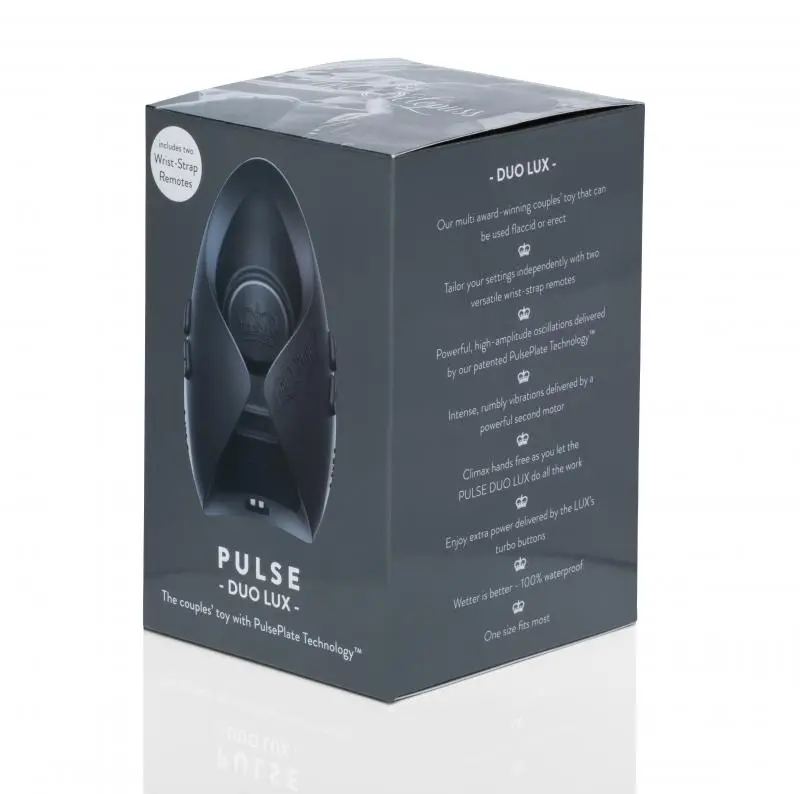 De Pulse Duo Lux Masturbator heeft een bijzonder design en is een masturbator en een koppelspeeltje in 1. Zo kun je dus samen met je partner heerlijk genieten van de krachtige vibraties. Je krijgt bij de Pulse Duo Lux 2 afstandsbedieningen geleverd die je eenvoudig om je pols draagt. Zo kun je samen makkelijk en snel schakelen tussen de verschillende vibratiestanden. De masturbator heeft 6 functies en 3 diverse snelheden, en is inclusief opbergtas en USB-kabel met magnetische oplader. Vanwege zijn open design kan deze masturbator ook gebruikt worden als de penis niet stijf is en is hierdoor ook geschikt voor mannen met een erectiestoornis. Ook is de Pulse III Duo perfect voor mannen die om welke reden dan ook moeite hebben de bewegingen te maken die bij de meeste masturbators nodig is. Als de penis stijf is, blijft de masturbator goed op zijn plek zitten en hoeft hij niet op en neer bewogen te worden.