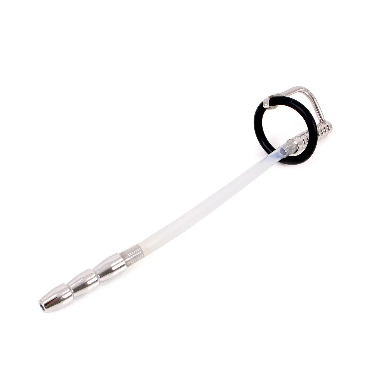 Dit is een speciale geribbelde urethral katheter en penisplug. Begin met het inbrengen van de 3 grote geribbelde ribbels met een diameter van 9 mm, gevolgd door een transparante siliconen buis afsluitend met een geribbelde rand. Inclusief 2 rubberen eikelringen, zodat hij bijna iedereen past, met een binnendiameter van 25 en 32 mm.