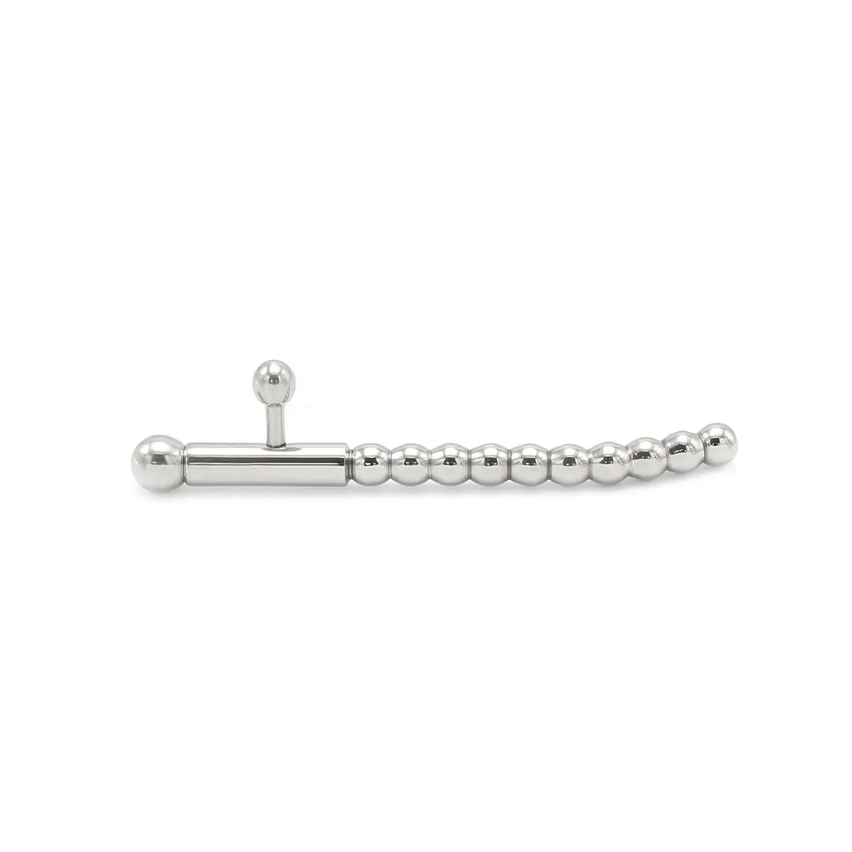 Geniet van de ervaring van een licht gebogen holle penisplug met deze roestvrijstalen penisplug met kralenpatroon, en 2 afschroefbare knopjes en maak uw orgasme nog intenser. De stalen penisplug is glad gepolijst en gemakkelijk in te brengen voor een nog intenser orgasme, eenmaal ingebracht bedekt de glimmende baltop het topje van uw penis met een stijlvolle uitstraling. Er zijn 2 afschroefbare balletjes, zodat u de uitgang van uw vocht naar wens kunt kiezen. Kiotos steel is gemaakt van 100% roestvrij staal en glad gepolijst.