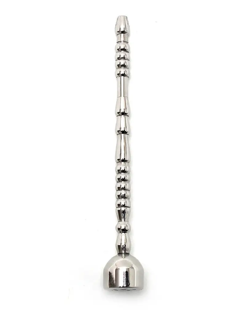 Deze stalen plug is glad gepolijst en makkelijk in te brengen voor een nog intenser orgasme. De dilator heeft stimulerende ribbels die de gebruiker zal voelen bij het inbrengen van de dilator. Het uiteinde van de plug is voorzien van een douchemond en bevat 6 open gaatjes. De diameter van de bovenkant van de plug is 20 mm, de inbrengbare lengte is 120 mm en de inbrengbare diameter is 6 mm.