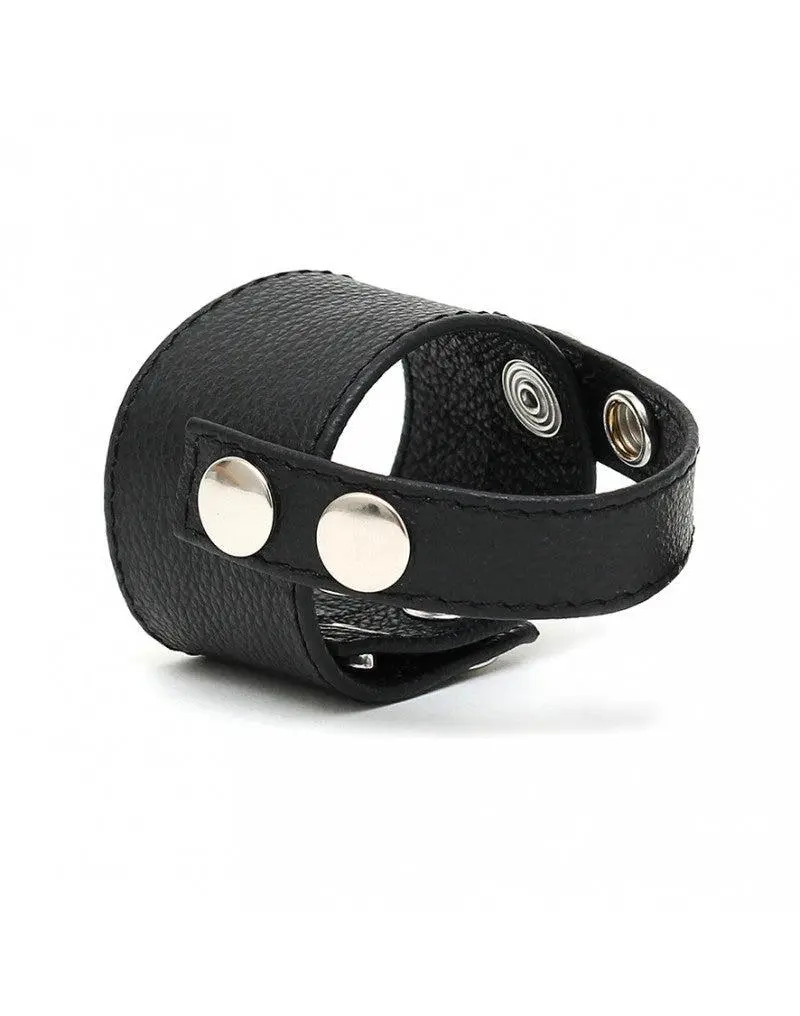 Rimba Bondage Play Penis Scrotum Koker Van Leer Met Bandje Over De Eikel – Zwart