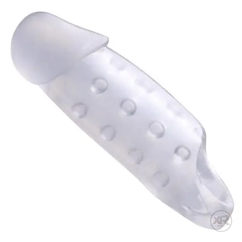 Erotische penisvergrotende sleeve met noppen van Tom of Finland. De gladde, transparante penissleeve zorgt voor meer lengte en dikte van je geslachtsdeel. Voeg wat glijmiddel toe, glij de zachte sleeve in en maak hem aan de achterkant vast met de speciale band. De band zorgt voor veiligheid, maar ook voor extra gevoeligheid. De penissleeve geeft jou direct een boost en hij zal je partner stimuleren als nooit tevoren. De noppen aan de binnenkant zorgen voor extra stimulatie bij de man.