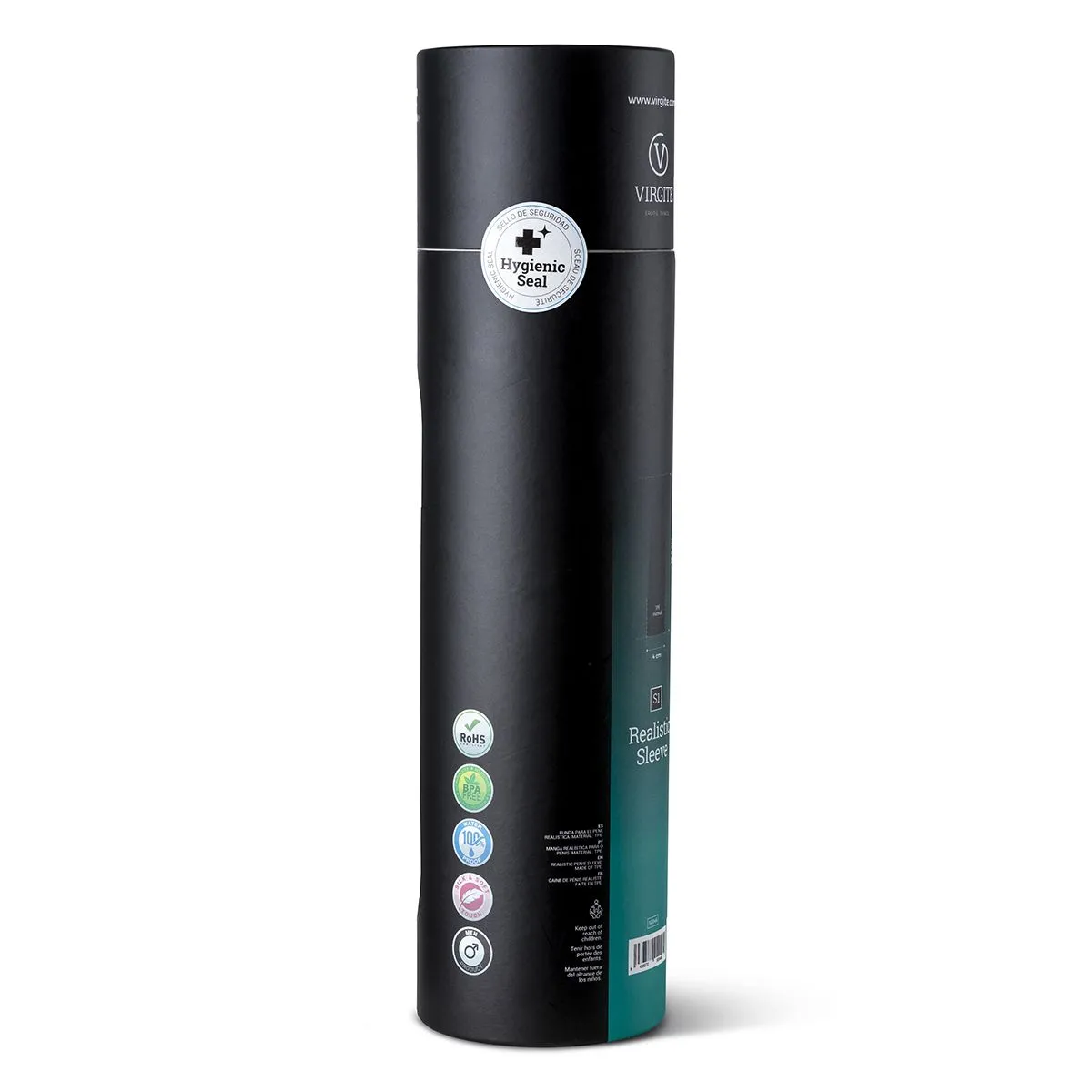Realistische penis sleeve gepresenteerd in een elegante tube doos. Het past zich aan de penis aan dankzij zijn flexibiliteit. Is heel erg rekbaar dankzij het TPE materiaal. 16.5 cm lang.